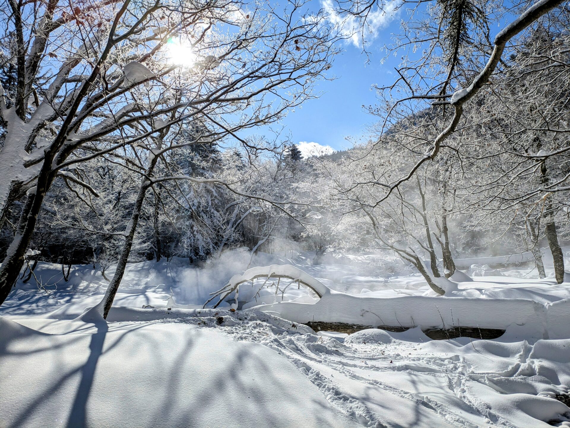 - 神秘的な森の探検 雪に覆われた静寂の森の中を歩き、冬ならではの美しい風景や、動物たちの足跡を見つけに行きましょう。森の中にひっそりと存在する泥火山など、この場所ならではの自然の神秘を体験できます。